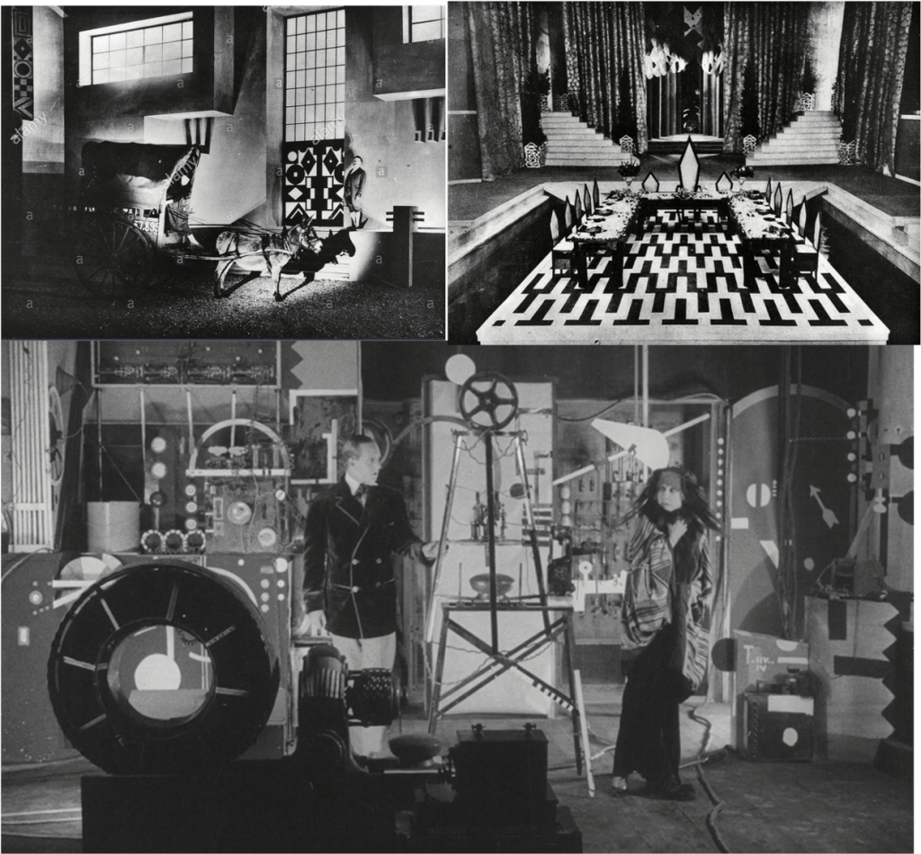 Bien des films ont su employer l’architecture comme décors souvent inoubliables, L’inhumaine de Marcel Lherbier (1924) est un monument du cinéma muet, mais aussi un feu d’artifices dédié au cubisme et à la géométrie dans des décors de Robert Mallet-Stevens et Fernand Léger. A voir si possible dans la version restaurée de 2014 qui a révélé les couleurs d’origine avec ses plans de nuit bleutés.